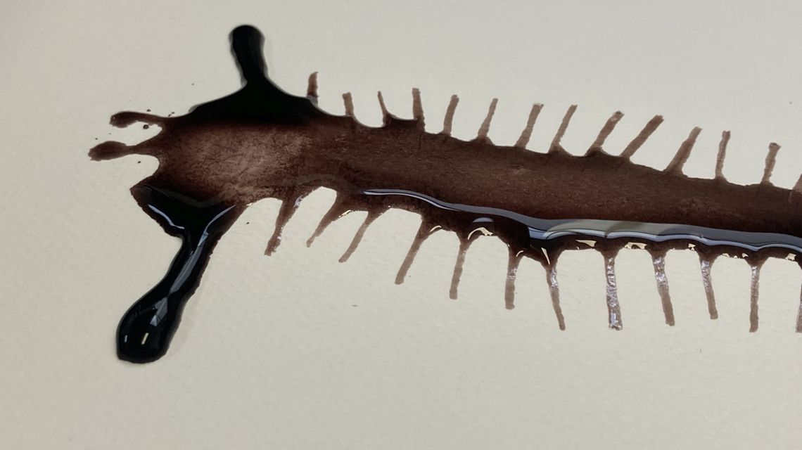 Tinte ist ein wunderbares Material für Zeichnung und Malerei. Entgegen industriell hergestellter Farbe arbeiten wir in der Werkstatt mit Eisengallustinte, die als urkundenechte Tinte seit Jahrhunderten verwendet wird und aus Eichengallen hergestellt wird. Darüber hinaus nutzen wir weitere Pflanzenstoffe zur Herstellung schwarzer oder grauer Tinten – Farbflüssigkeiten, die auf besondere Art und Weise reagieren, nachdunkeln und in unterschiedlichen Farbschattierungen changieren.